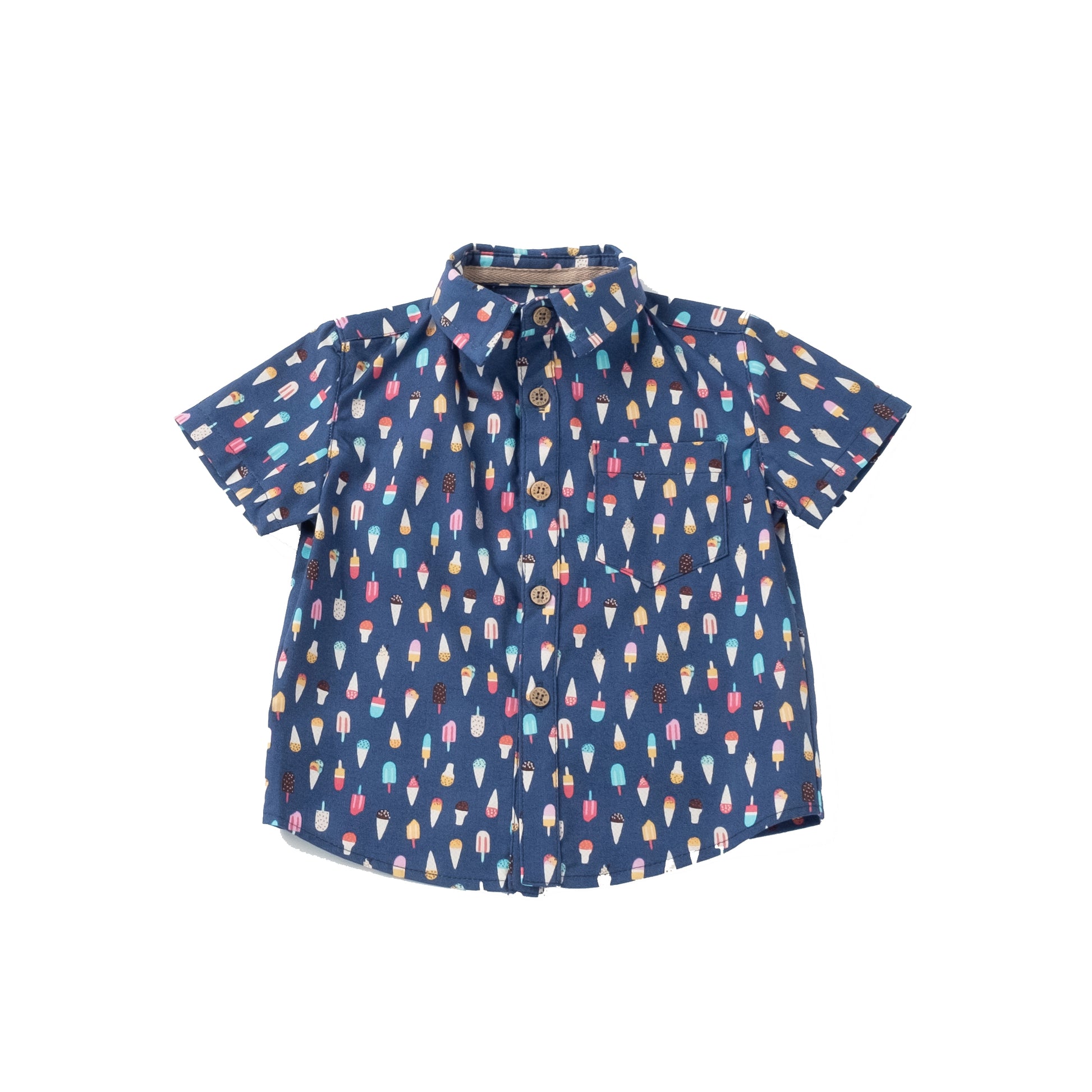 This button-down collared shirt is perfect for any adventure your little explorer will go on. This shirt features one chest pocket and five engraved buttons.