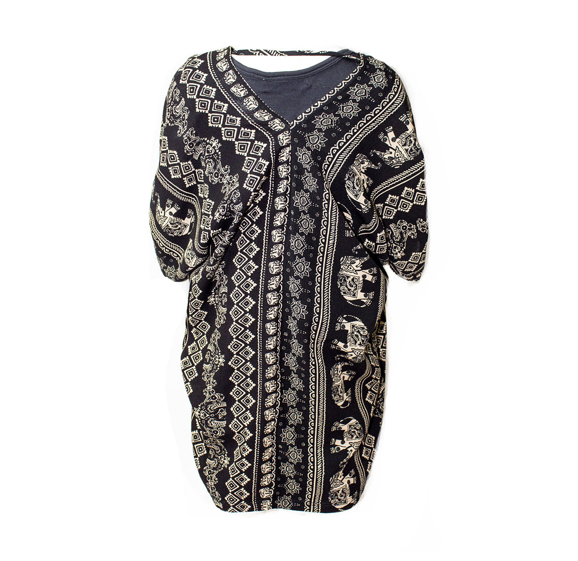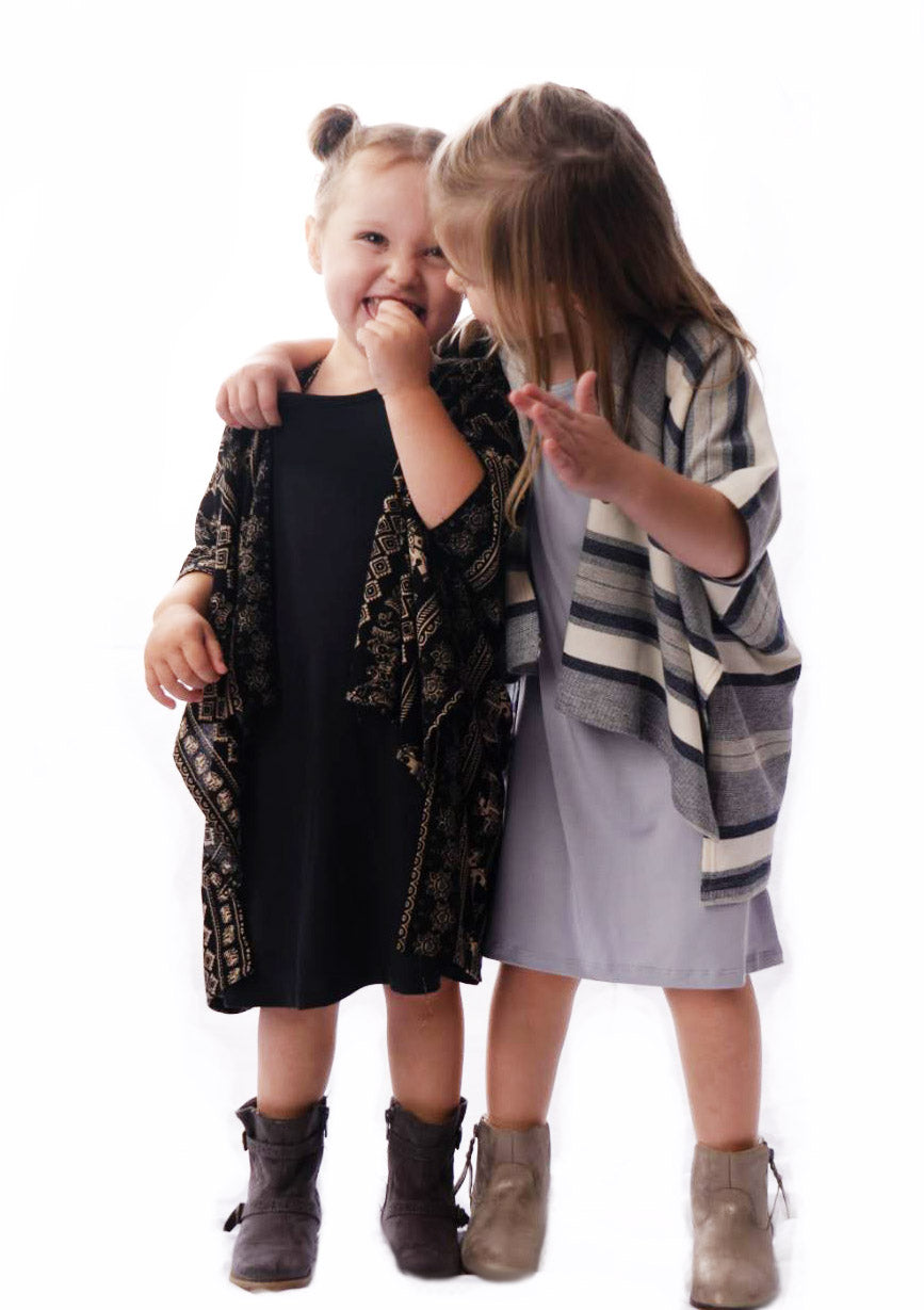 Your little one will be a bohemian queen in this tiny kimono. One size fits most 2T to 6. Wear this together with our Elephant print Mother of All Kimono's for the cutest mini + me look.