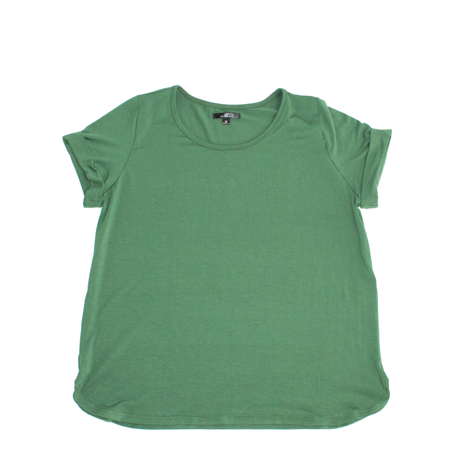 Beautiful and oh so soft jersey fabric elevates the classic tee to something a little more luxurious. Rolled sleeve design with a shirttail hem. Boxy silhouette.